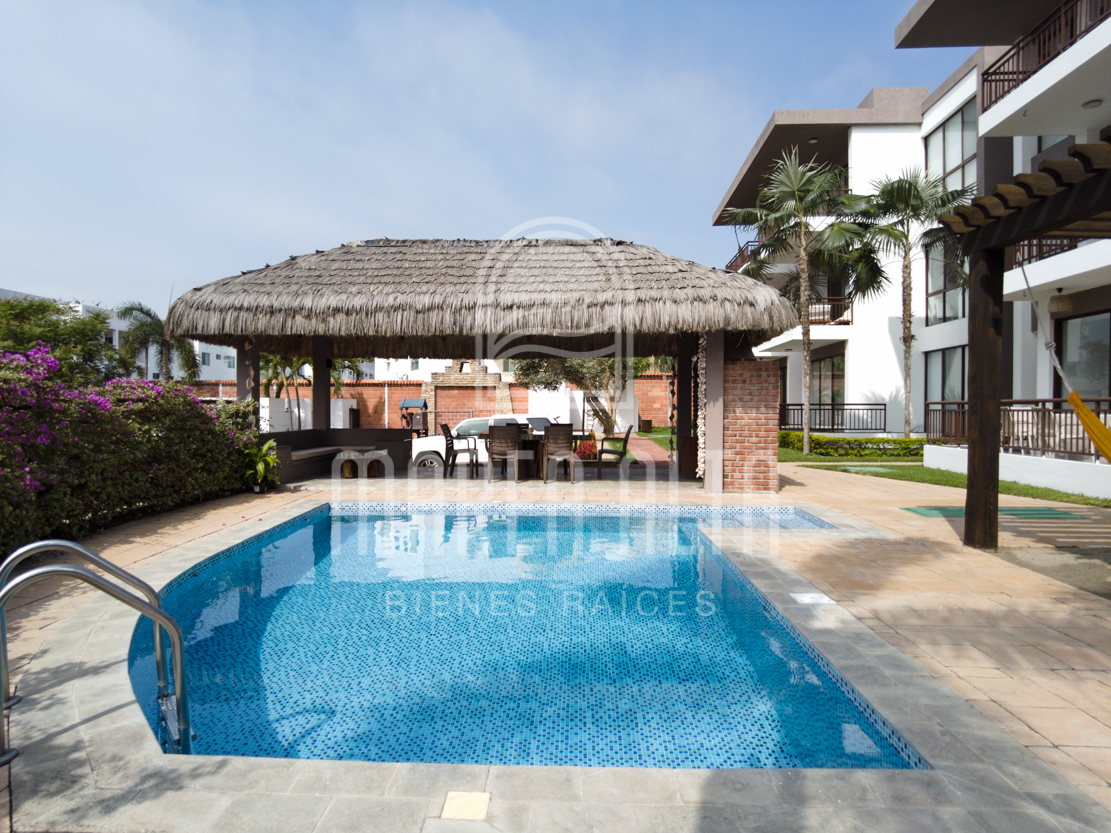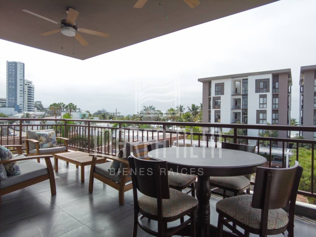Ubicado frente a la playa, dentro de un condominio privado que cuenta con piscina y áreas comunes bien mantenidas.